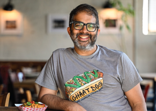 The chef blending Chicago hot dog roots with Pakistani street flavors.